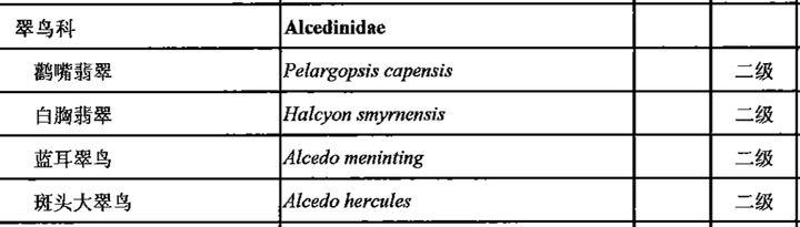 同时,值得关注的一处调整是白胸翡翠进入名录,成为国家二级保护动物。