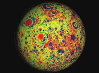 美国圣杯号月球探测器于2012年3月至5月获得的月球重力梯度图