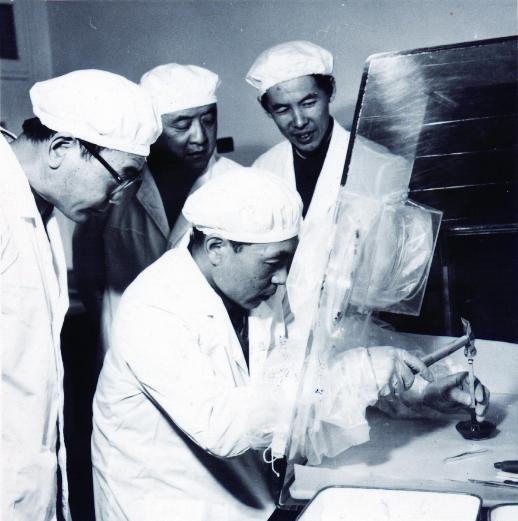 1978年欧阳自远等科学家在中科院地球化学所实验室取出美国赠送的一克月岩
