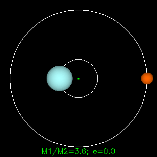 而当其中一个质量比另一个大得多的时候,系统的质心会进入到大球内部,大球围绕质心的运动幅度和速度会比小球的小很多。