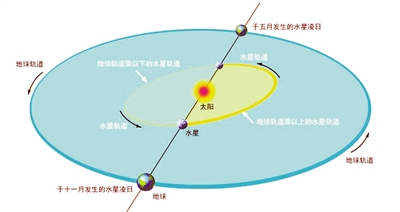 作为地内行星,水星和金星都会运行到地球和太阳之间。它们与地球的轨道都不是严格在一个平面内,水星的轨道倾角可以达到7度,金星则很小。水星和金星的凌日都非常罕见,尤其是金星凌日,每一百多年只有两次,下次金星凌日要等到2117年。而算上今年11月的这次,本世纪我们还能观测到11次水星凌日。