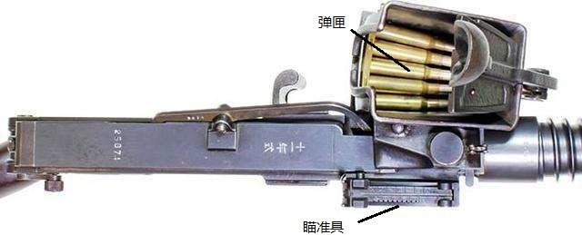 图1 “歪把子”机枪俯视图 可以看到,弹匣中装填的是五发一组的步枪弹夹,瞄准具偏离了弹身中轴(图片来自网络)