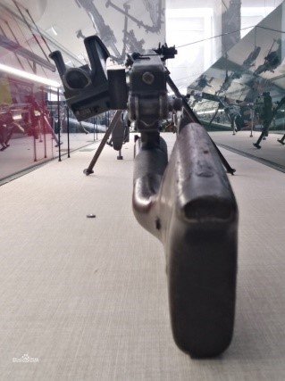 图2 “歪把子”机枪后视图 可明显看到枪托相对于枪身向右侧偏移(图片来自网络)